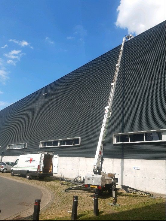 Schoonmaak hoog industrieel dak met hoogwerker